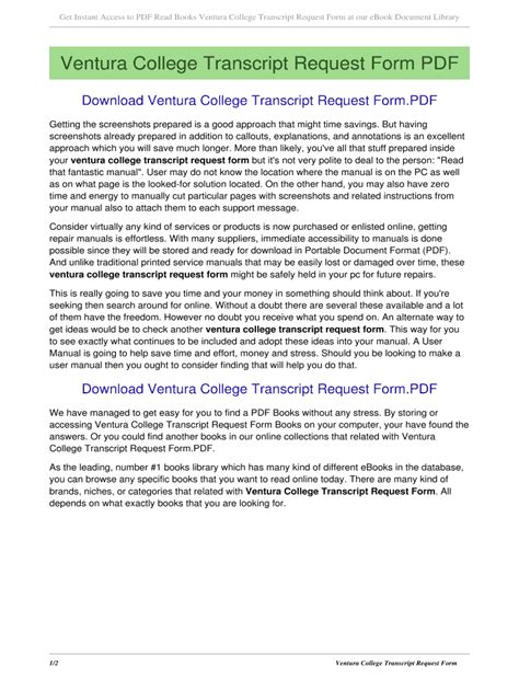 Online PDF Ventura College Transcript Request Form Hardcover ManyBooks